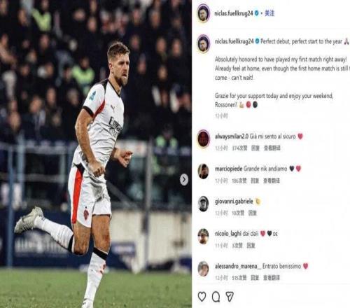 米兰圈米兰在本轮意甲1-0卡利亚里,新援中锋菲尔克鲁格替补完成首秀。他也在赛后通过社媒发文纪念:“完美的首...