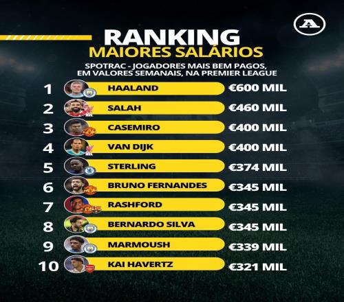 北京时间10月13日,《球报》列出了英超目前周薪最高的前十位球员,哈兰德60万欧元居首,萨拉赫、卡塞米罗紧随其后...