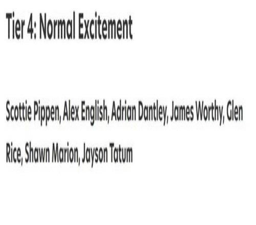 第四档(7人):皮蓬、英格利什、丹特利、詹姆斯沃西、格伦莱斯、马里昂和塔图姆