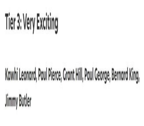第三档(6人):小卡、乔治、格兰特希尔、皮尔斯、伯纳德金和巴特勒