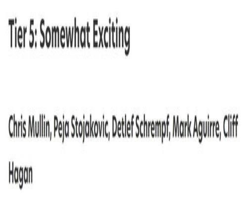 第五档球员的观赏性依旧有限,其中穆林、佩贾与施伦普夫都是出色的技术性得分手与射手。