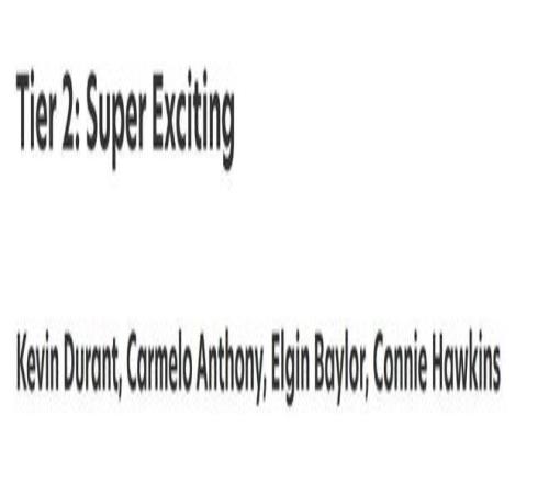 第二档(4人):杜兰特、安东尼、埃尔金贝勒与霍金斯