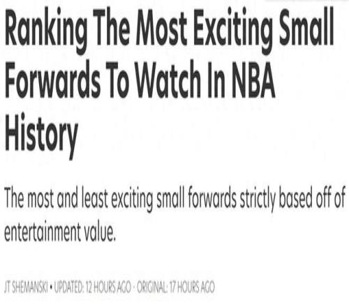 火箭队新核心杜兰特第二档!随着各队进入训练营,美媒《fadeawayworld》也适时为新赛季预热公布出NBA历史上小前锋观赏性榜单,其中4人共享第一档,以“丝滑”著称的乔治屈居第4档。