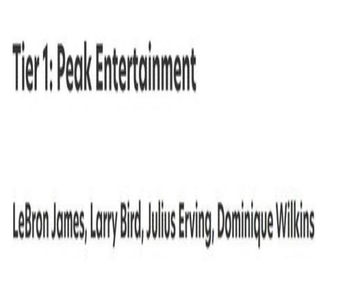 第一档(4人):詹姆斯、伯德、朱利叶斯欧文和多米尼克威尔金斯
