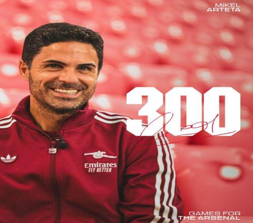 本场比赛,也是阿森纳主帅阿尔特塔执教球队的第300场比赛。