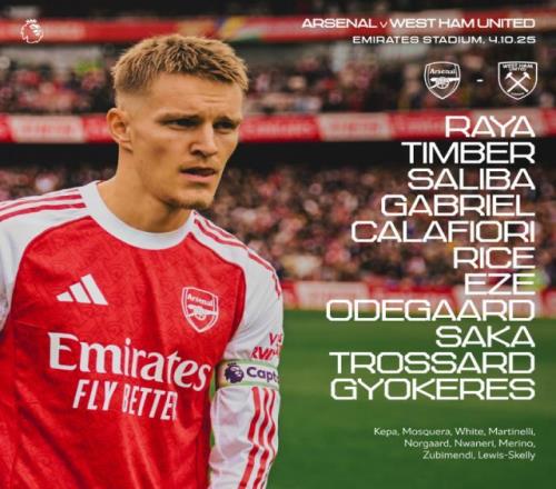 【英超】“双前腰”首发阿森纳力争痛打西汉姆