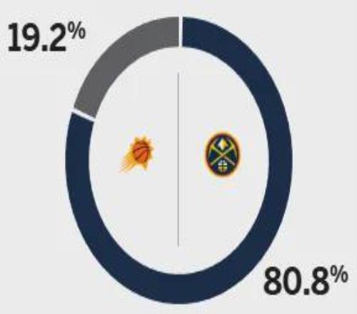 ESPN预测明日掘金vs太阳:掘金胜率超八成,太阳胜率仅19.2% 雷速体育 2025-10-25 20:00:36 雷速体育10月25报道 明日进行的NBA常规赛,掘金主场迎战太阳。赛前,ESPN专家团对本场比赛做出预测:主场作战的掘金胜率超过八成,而客场作战的太阳胜率仅19.2%。 太阳espn明日掘金丹佛掘金队NBA常规赛 上一篇: 止步于连续43场!文班亚马的NBA纪录就此中断下一篇: 返回列表