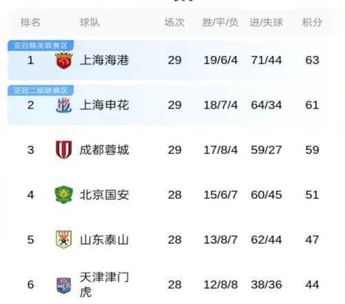 随着蓉城队12,申花队10,中超积分:1队退出争冠,前2相差2分