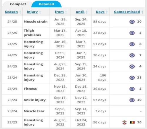 英超头号玻璃人!加盟切尔西2年伤停9次从未踢满过全场
