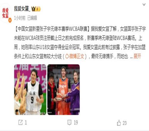 张子宇无缘新赛季WCBA:未能在截止日前注册与山东女篮存分歧