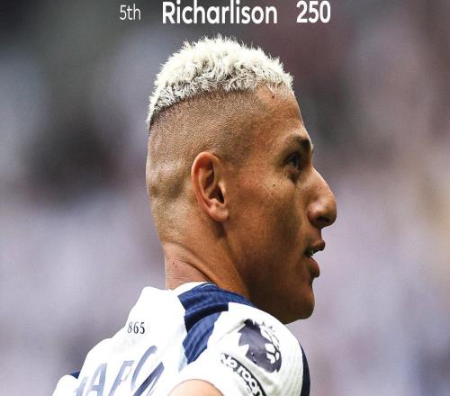 - 里程碑,里沙利松成第5位在英超登场250次的巴西球员